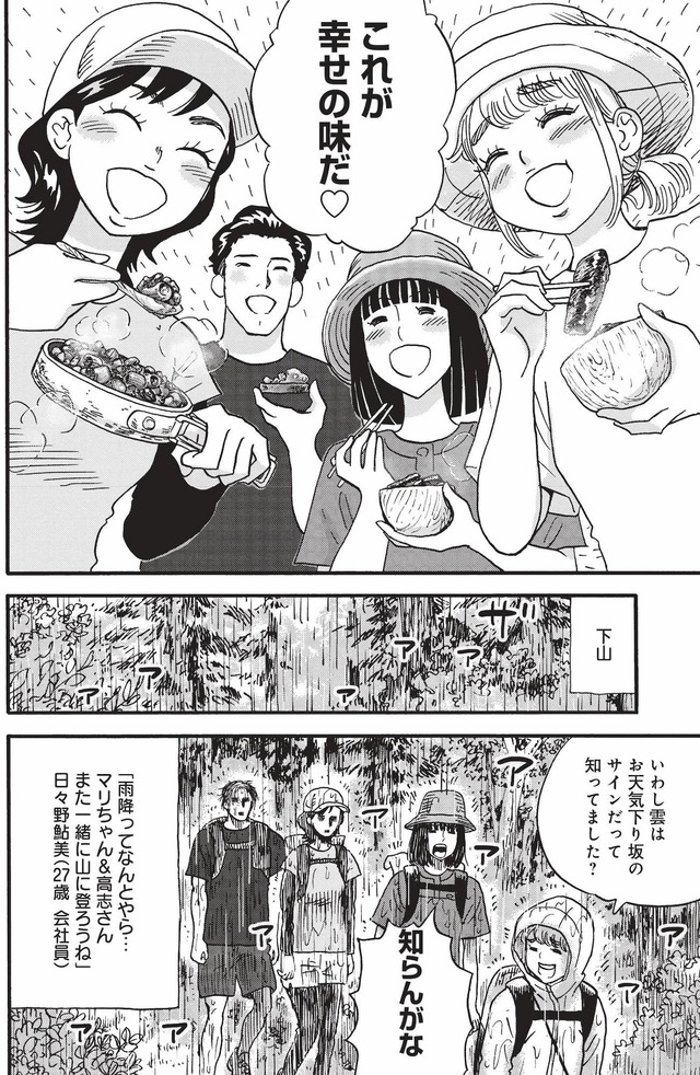 欲張りウィンナー麺、雲上の楽園コーヒーなどなど…。読むとお腹がすいて、山に登りたくなるアウトドア漫画