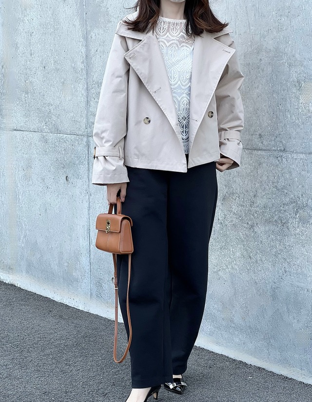 156でキッズサイズをセレクト。着心地とシルエットが優秀な【ユニクロ】パンツでつくるショートトレンチスタイル【40代の毎日コーデ】