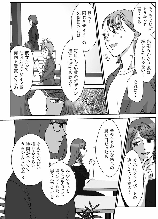 計算された笑顔とあざとさを武器に、何度も社内表彰を勝ち取ってきたデザイナー・仲西モモコ。