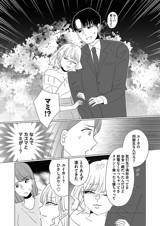 同窓会で再会した華やかな幼なじみ・マミは、夫に近づき、やがて関係を持つ。